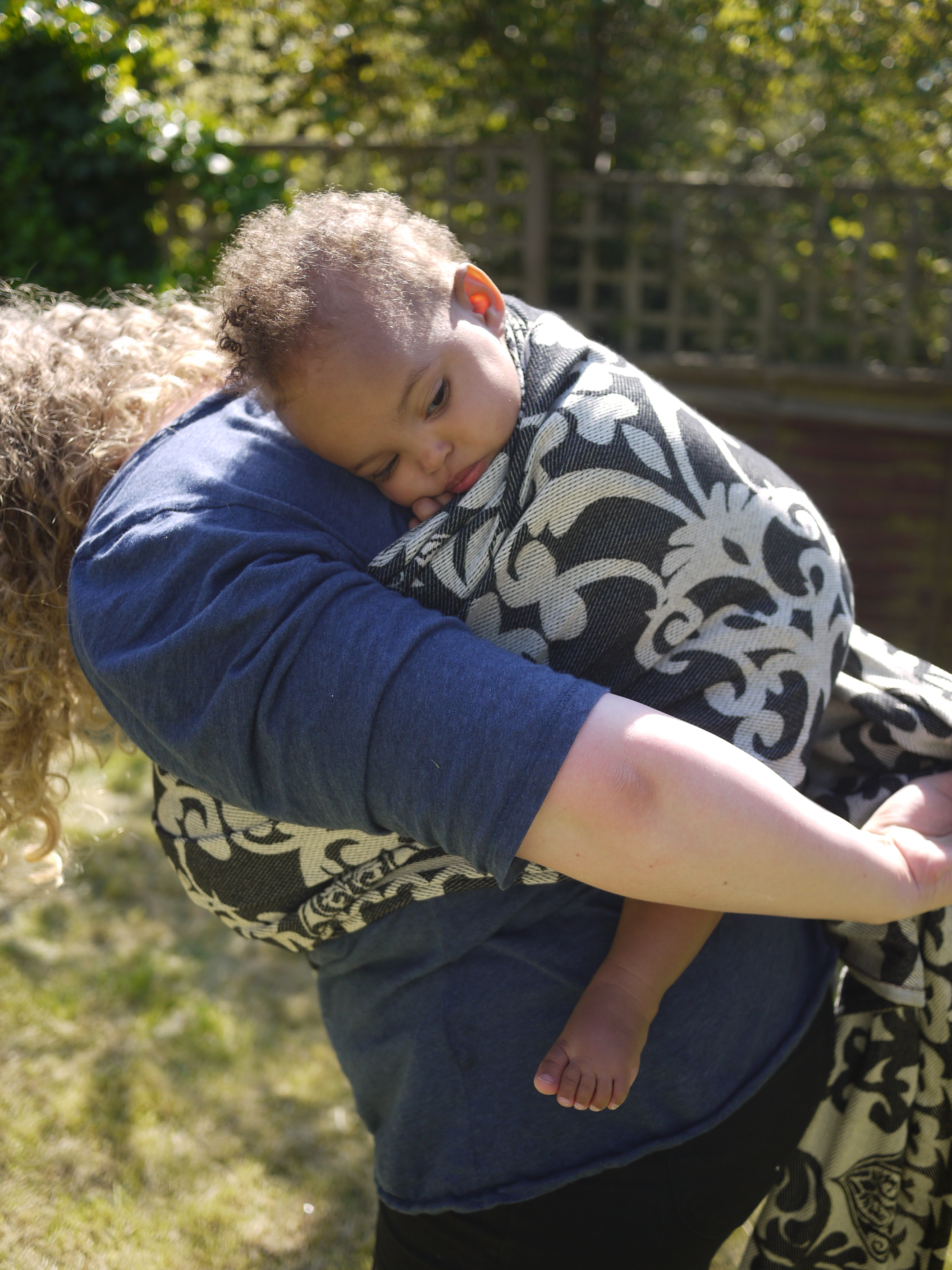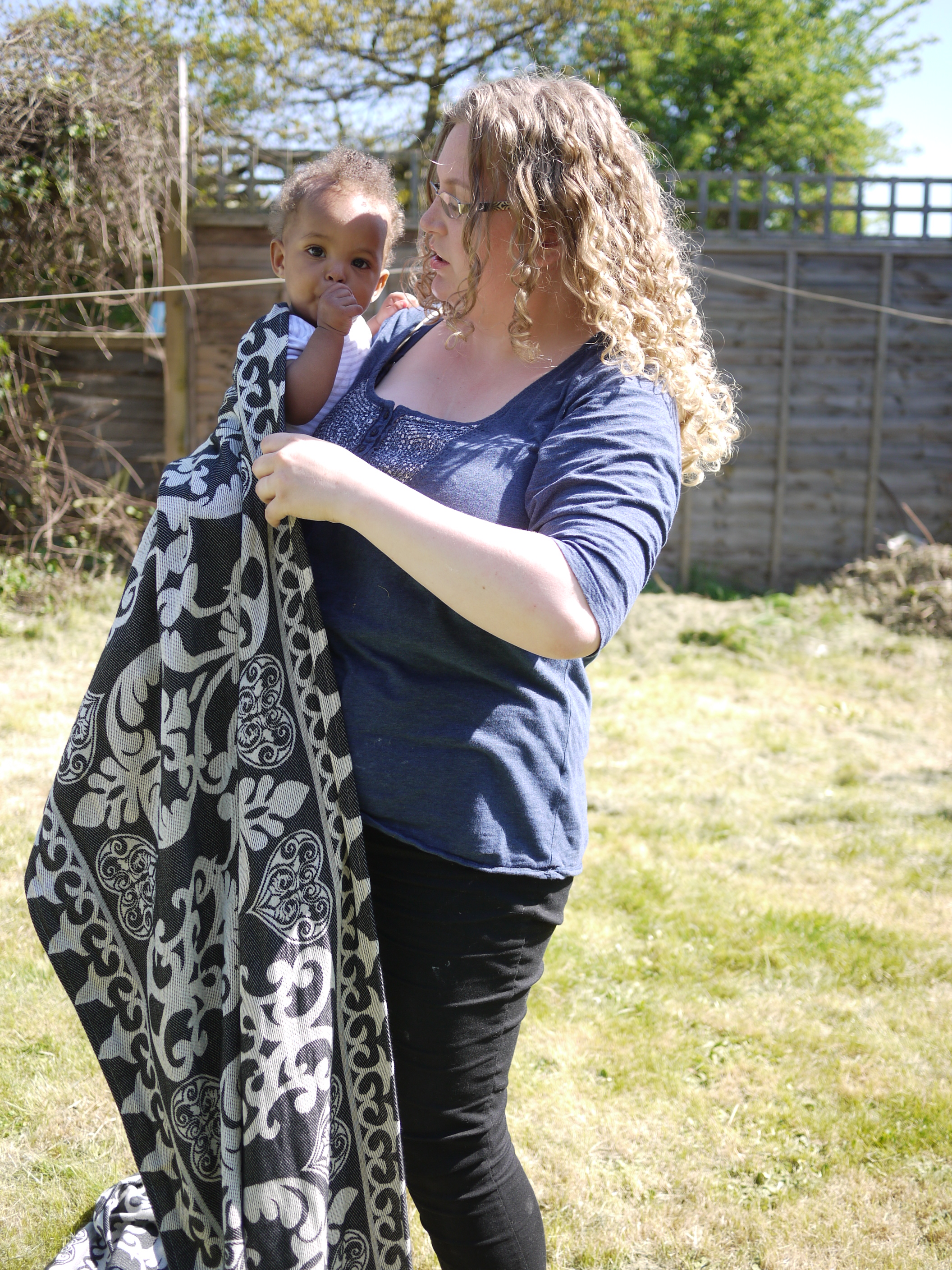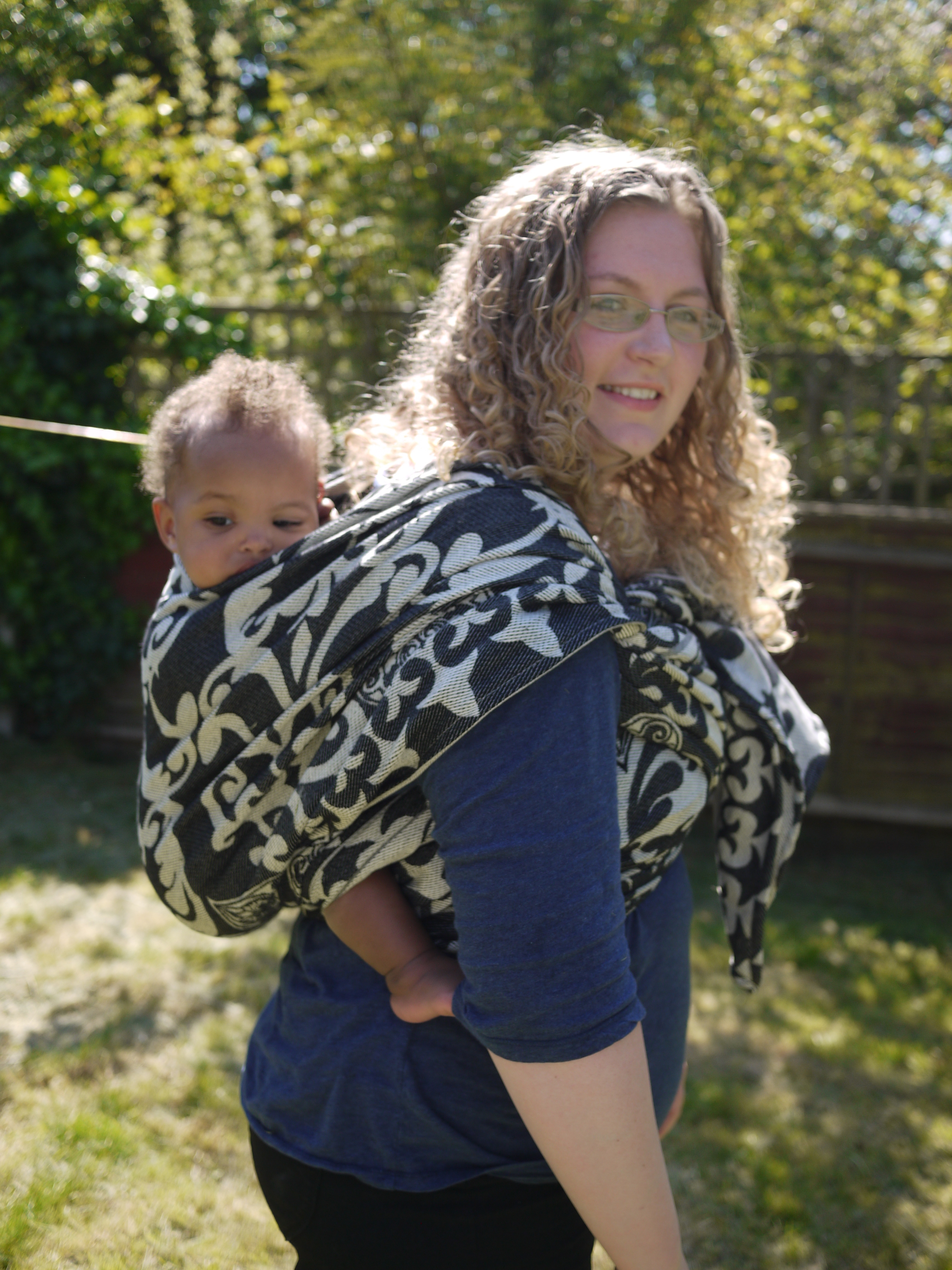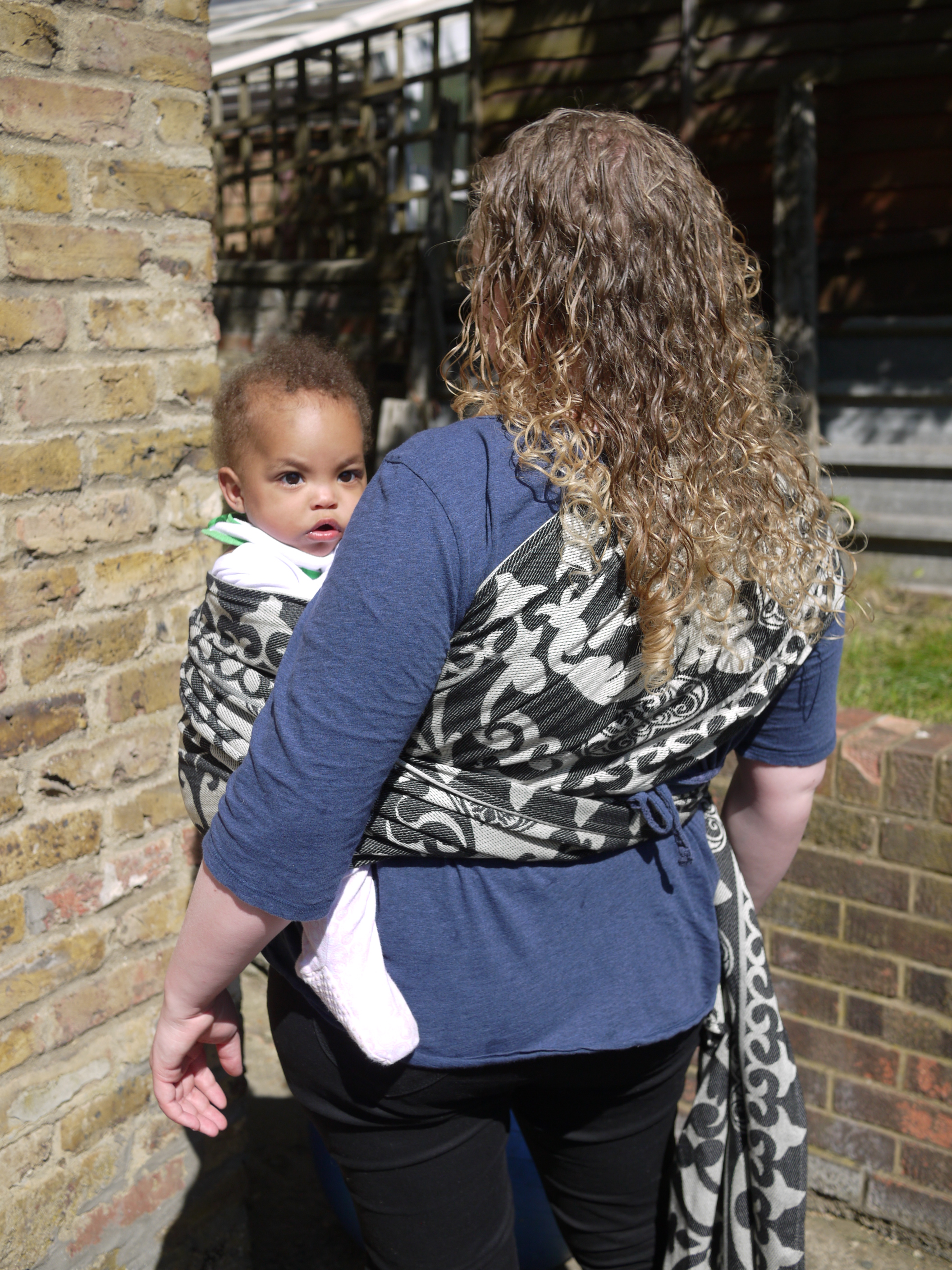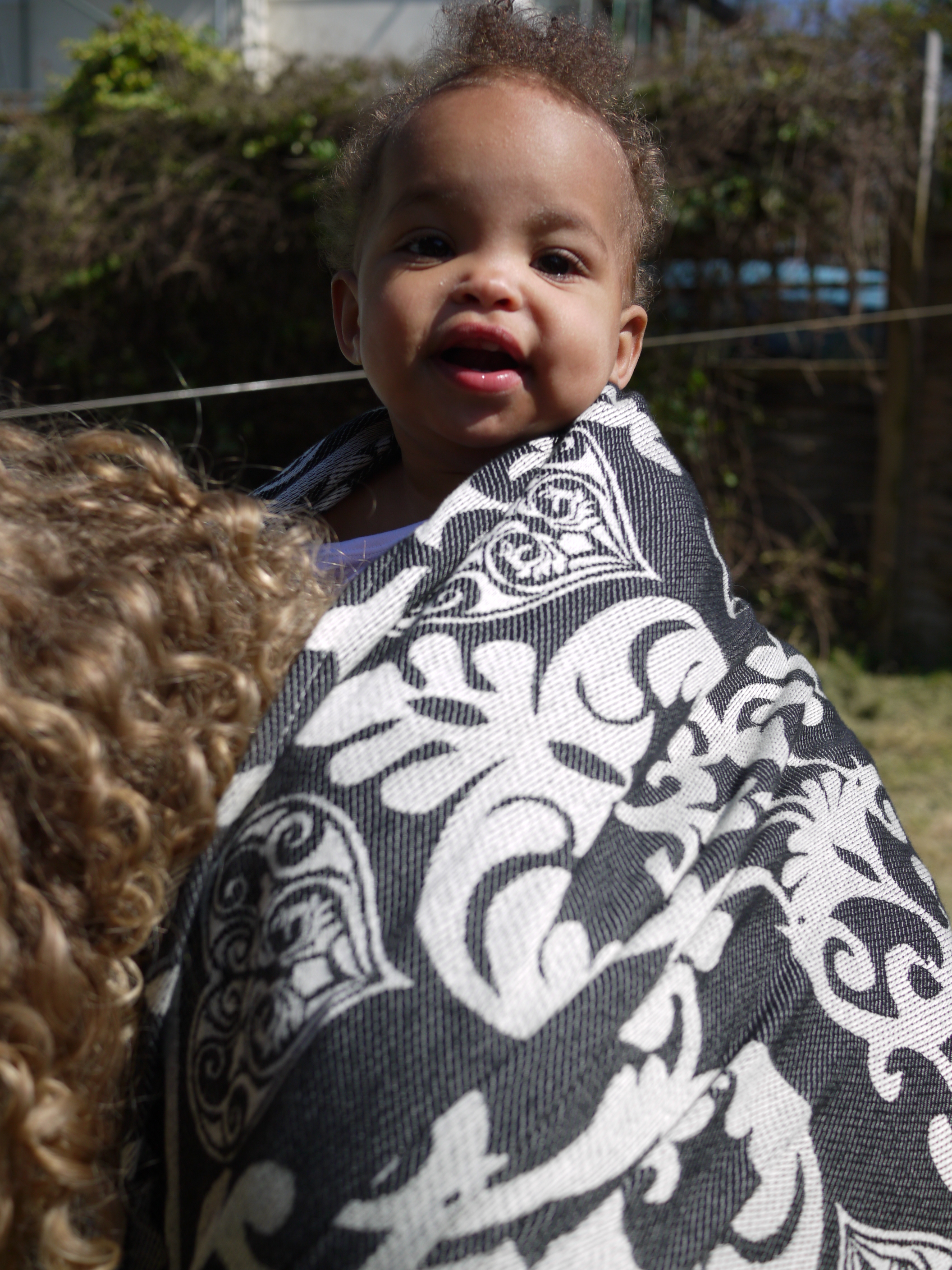 I spent most of a whole day in the wrap and it never felt diggy or uncomfortable, we walked for about an hour around West London before stopping in the park where I received admiring looks. The FWCC stayed fixed, nice and snug continually. And even a re-tie in the park with an audience was easy because the wrap is just so good and makes wrapping a real pleasure.