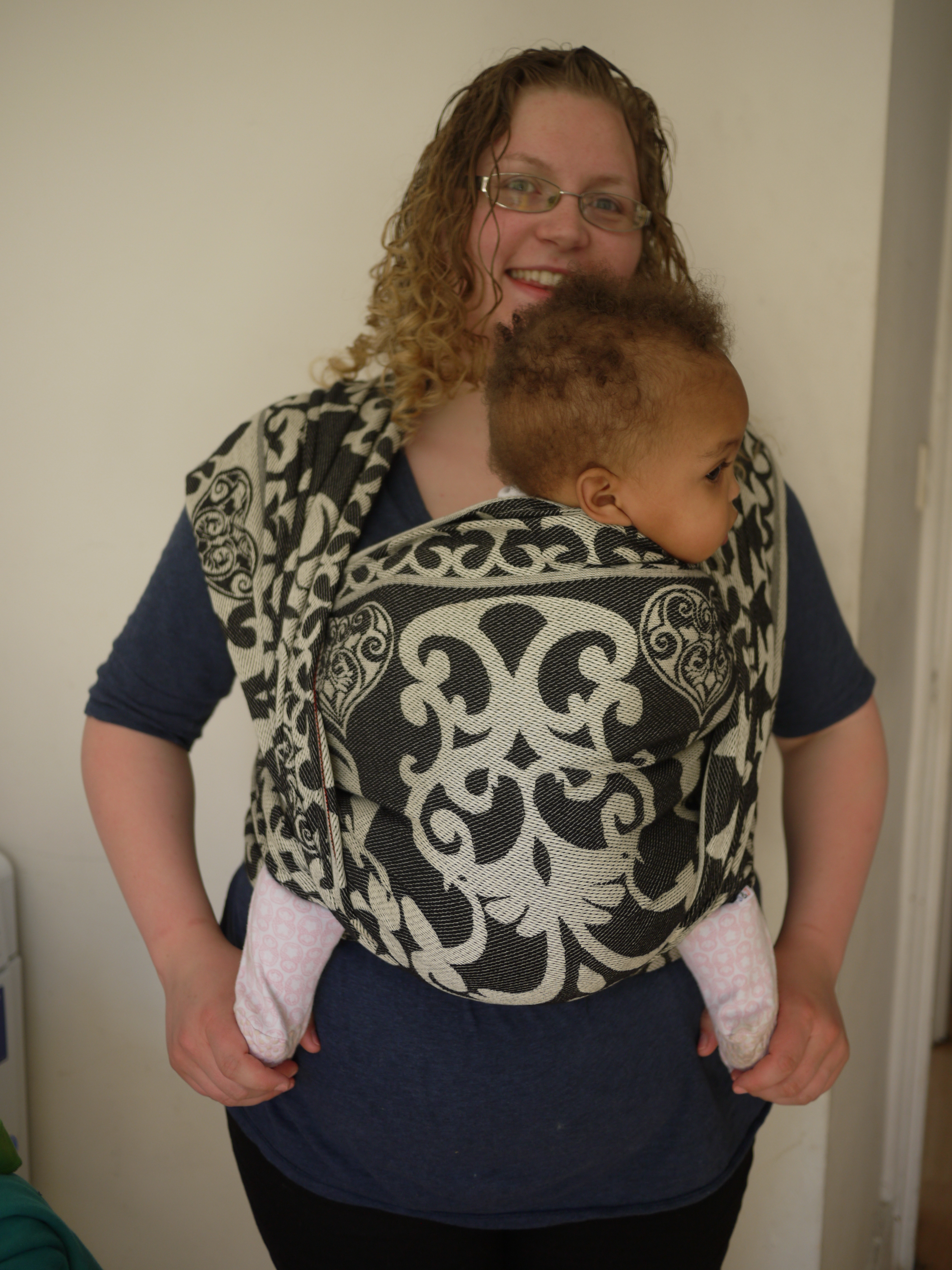 I am a self-taught facebooker/youtuber babywearer (thank you wrapyouinlove and twin sling ) so I take time to fiddle around to get the carry right and tension right for the carries but found that Fountain of Love was just a kind wrap for someone like me, it almost wrapped itself, the passes were easy to get tight and I was very pleased with the end look of the carries that I tried.