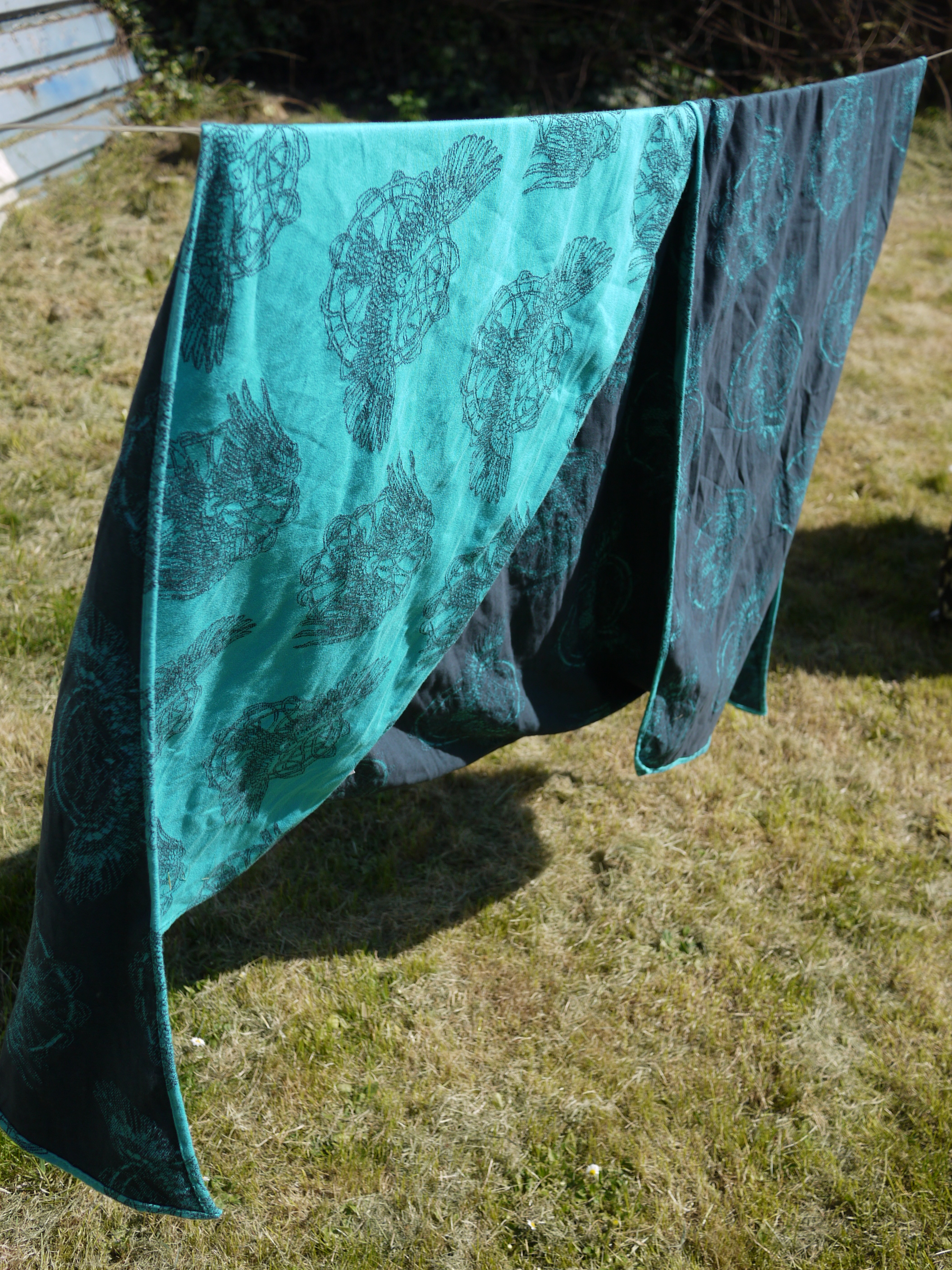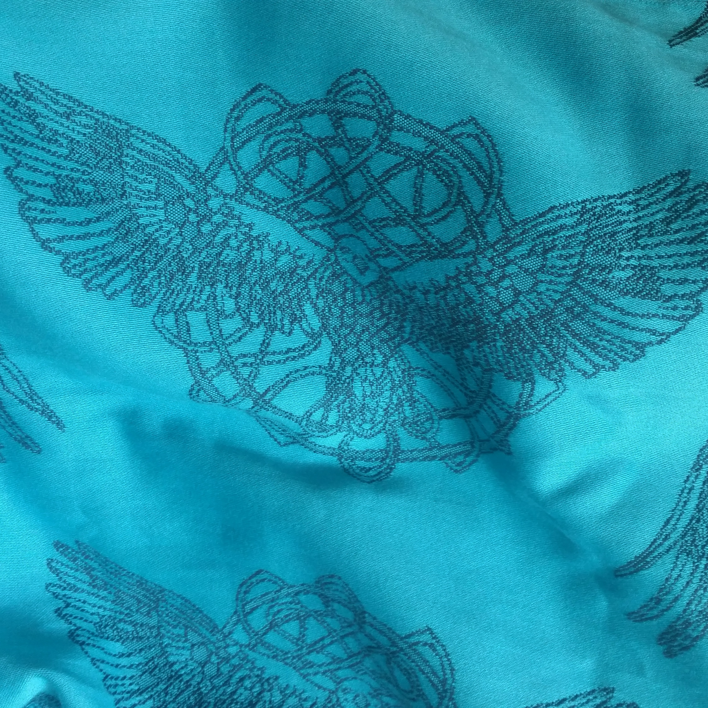For me, this wrap draws me in as I love not only the colour ( beautiful, light and refreshing turquoisey blue and black) but the eagle. The stretched out wings eagle design is my favourite and was hand drawn with such skill(see the credit and link to her page below) i love the detail and the symbolism. Strong and determined. I hope that I am that kind of mother.
